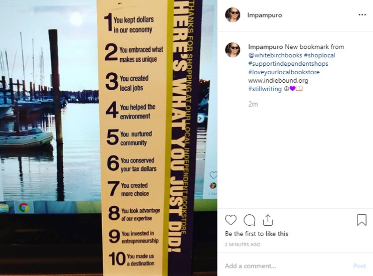 Books, fellow creatives, Shop LocalNew Bookmark Reminder August 30, 2019August 30, 2019 LM Pampuro Thanks to White Birch Books in North Conway, New Hampshire for the awesome bookmark! Share this: Click to share on X (Opens in new window) X Click to share on Facebook (Opens in new window) Facebook Like Loading... Related Published by LM Pampuro View all posts by LM Pampuro